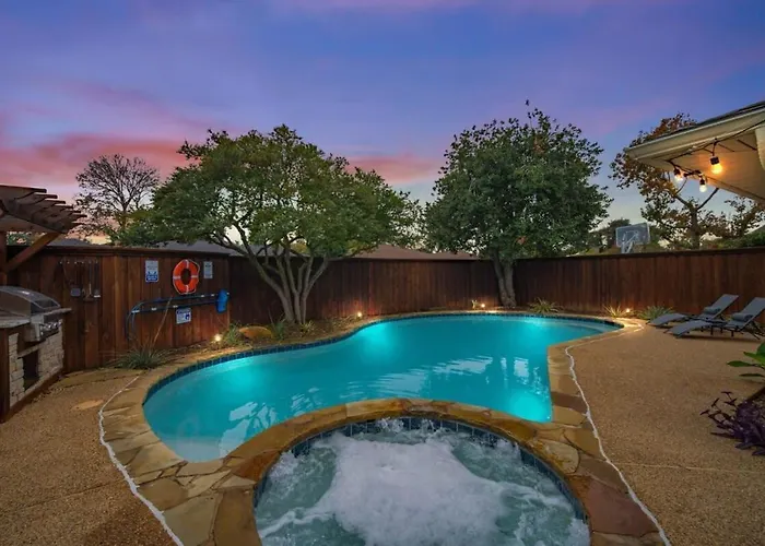 Gelegen etwa 15 Minuten Autofahrt von natürlichen Wahrzeichen wie dem Lake Highlands North Recreation Center, bietet die 3-Zimmer-Villa Best Of Richardson - 5Bd-3Ba With Pool, Patio, Bbq einen privaten Swimmingpool.